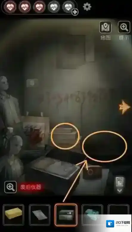 10、在治疗室的左侧场景,我们可以通过点击床边的杂物数次,找到废旧仪器和破损控制器。