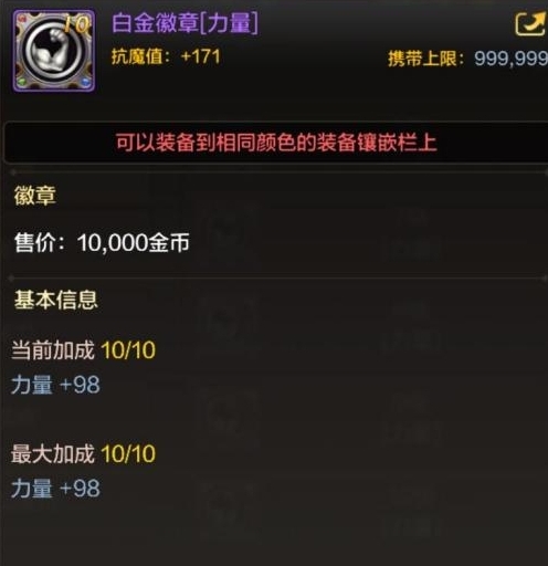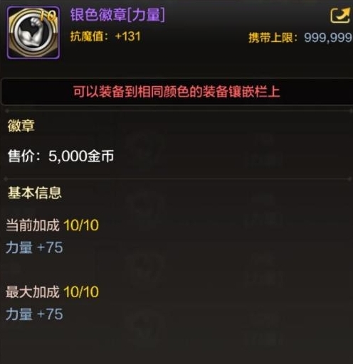 增加的属性银色徽章有7种:力量、智力、体力、精神、攻击速度、移动速度、释放速度,每种增加对应各自属性的数值。
