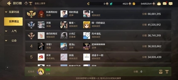 挑战须知可以进行组队挑战,队伍最多三人,三人分数相加一起进入排名,世界领主强度会随着时间的流逝逐渐增强。