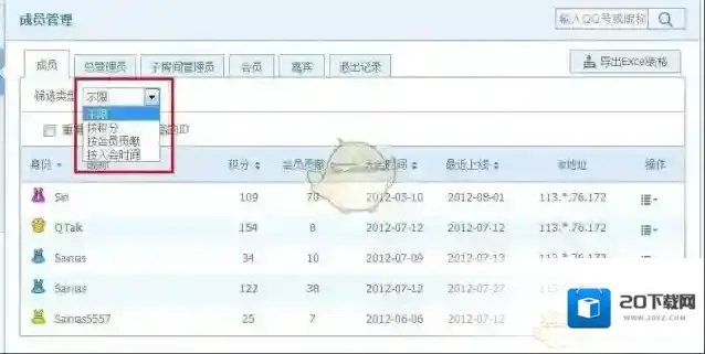 大家一直期待的排序功能也新鲜出炉了!现在可以按照身份、积分、会员贡献、入会时间、最近上线时间中的任一条件进行升序或降序排列。