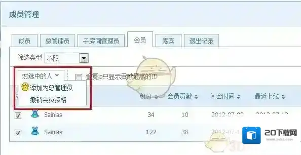你还可以选择在总管理员、子房间管理员、会员、嘉宾的分类中进行批量操作。