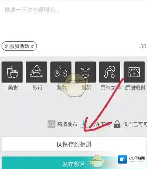 3.正常拍摄一段视频,可以给视频编辑一下,包括加音乐、字幕等,然后点击右上角的发布