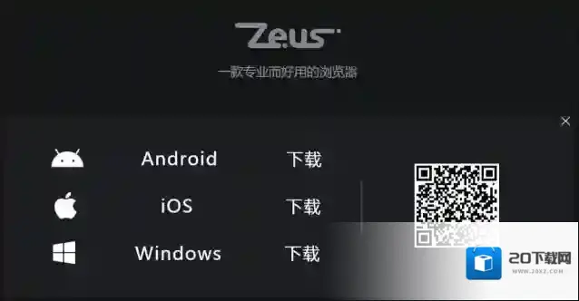 1、首先我们打开20下载网网下载宙斯浏览器安装包。