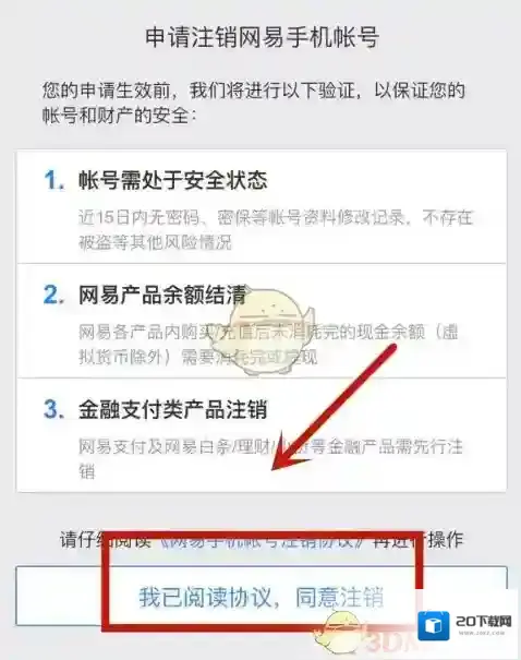 7、接着点击下方的“我已阅读协议 同意注销”,即可成功操作。