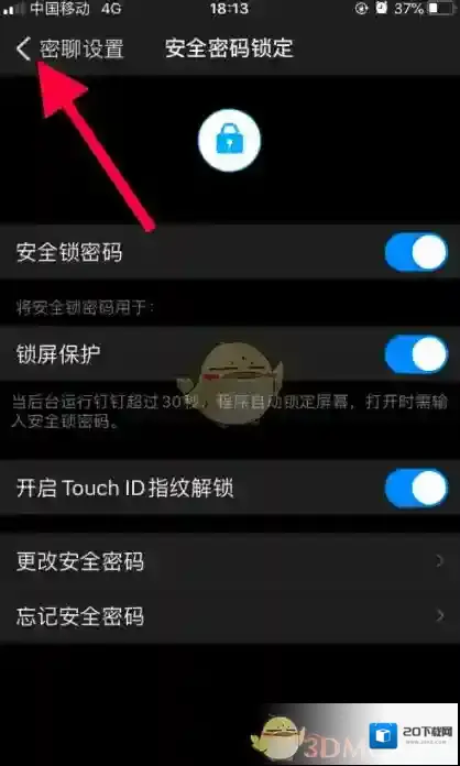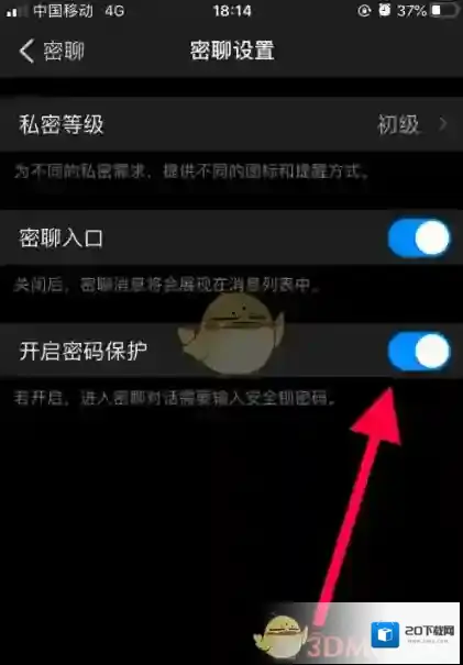 3、进入“密聊设置”界面之后,点击“前往密码设置”