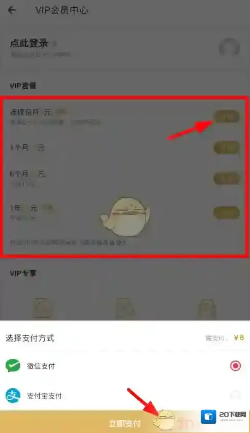 4、这样一来,只要选择好自己想要开通的套餐,就可以直接进行支付,开通会员来免除广告了。
