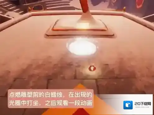 5、出门后点亮雕塑前方的白蜡烛,进入光圈打坐观看动画;