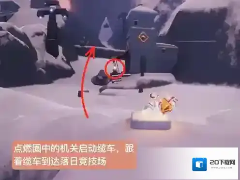 4、点亮机关开始乘坐缆车,直接到达日落竞技场;