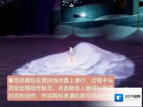 6、看完动画后来到熘冰场和小女孩一起滑行,点击头顶的动作标志,表演完后即可完成梦想季最后一个任务