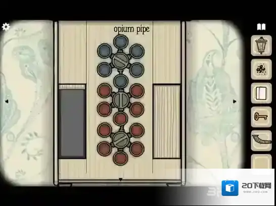 转到这个地方查看墙上的密码,回到拿厕纸的密码柜那里对上(很简单,过程就不细说了),左边暗匣打开,得到烟管