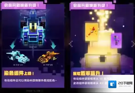 本次活动推出了风格多样的传说品级组件,传说级的坐骑组件有末地飞车、下界飞车和天铸飞车三款,而传说级武器分别是:下界星芒、天界星芒与绿野星芒