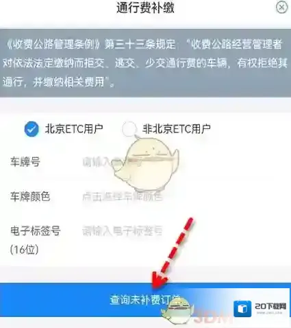 4、点击底部的通行费补缴。