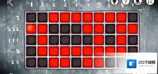 这个很多人说看不懂,我解释一下,数字,上图中有九宫格提示,说明这个解法是:数字代表个数,比如第三横排是111,表示这一排有三个独立的1,最后一横排是22,表示这一排有两个2,同理,竖排的12,就表示有一个1,一个2,中间要隔开的。所以我们可以以竖排的5为突破口,然后是8和7,多次用悖论的方式实验,慢慢就推出来了。最后的正确答案是下图。
