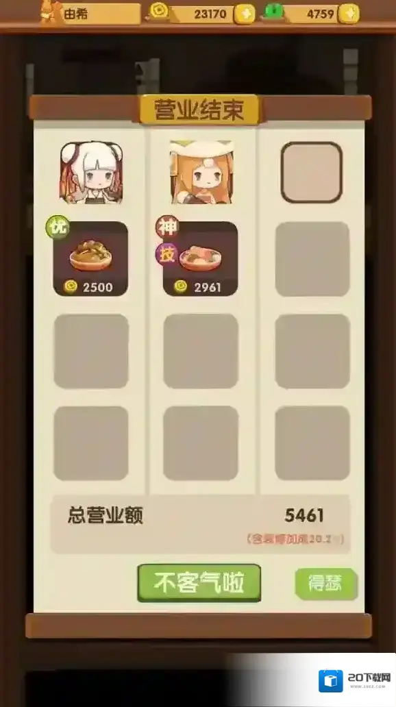 一、2阶满级羽十六一个(小羽只能把干炒牛河做到“优”,所以如果你们有其他属性更好的厨师可以换……但那个厨师最好有+稀有客人几率的技能或者厨具)