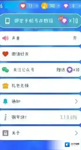 4、接下来我们点击下方的“设置”,在这一栏中我们可以对游戏的声音,通知提醒进行开关处理,也可以进行礼包兑换,除此之外,新手玩家还可以绑定手机号存数据,以及关注公众号可以获得免费的钻石呢!