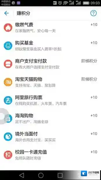 日常任务就比较多了,日常线下刷支付宝、打车、充话费、缴水电费、使用蚂蚁花呗等等都能获得积分。