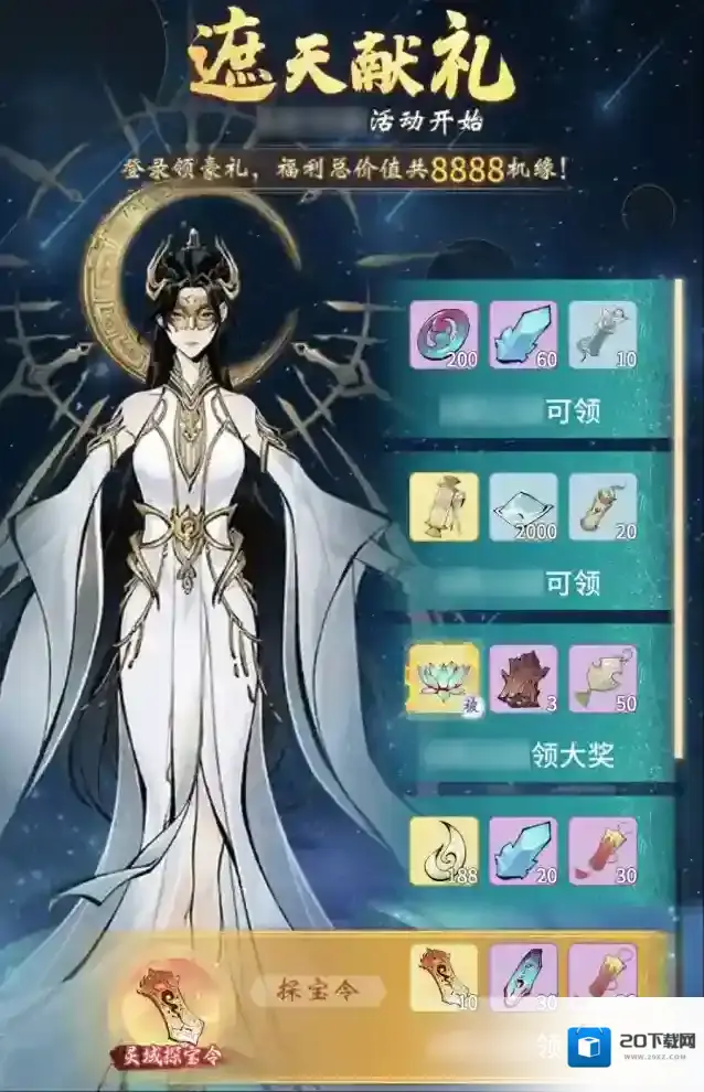 6月30日~7月10日期间登录,免费领价值8888机缘的“遮天献礼”,包含联动古宝、探宝令、功法要诀等丰富资源。