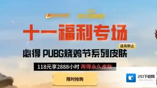 雷神加速器官方协同pubg绝地求生共同推出,花费118元享受2888小时,再得永久皮肤,必得pubg烧鸡节系列皮肤,除皮肤外,还可以获得游戏内胜利之舞表情等。