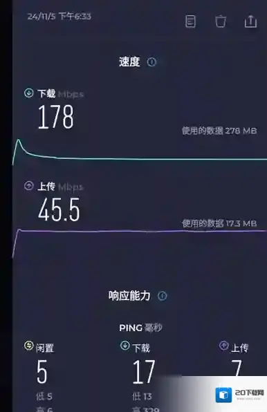 3、能看到目前下载的速度,并且能看到检测的时间和网络,十分的详细。