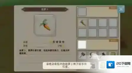 这里有个小技巧:第一天可以不用开垦农田,等第二天卖掉胡萝卜,用所得的钱刚好可以升级工具,把洒水壶升级一次后,一次就能浇三块田,非常方便。