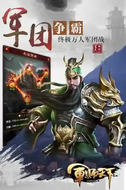 军师天下全新玩法三国策略国战手游,登录即可领取顶级神将,强力阵容任你搭配。写实怀旧新画风,直观代入,真实展示三国时期整体图景。轻松超好玩,福利宝物送不停,过关斩将、策略搭配玩转三国,成就你的军师天下。