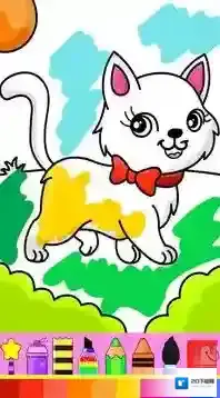 2、在卡通填色模式中(如小猫、鳄鱼图案),玩家面对已勾勒好轮廓的卡通形象,通过点击下方色彩工具。