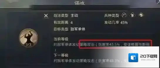 突击:攻击伤害,只写伤害率,那就是物理输出战法了,适合攻击成长高的武将用。这里给可以曹操带。