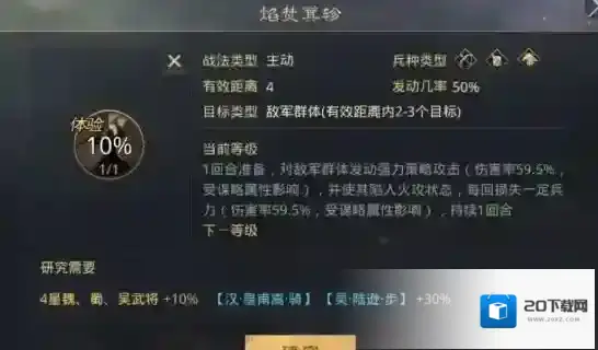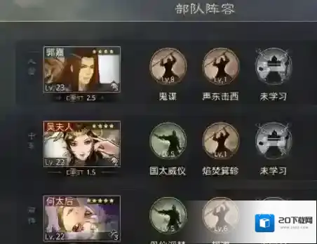 战法经验很有限,所以一般将输出战法点到5级后,优先升级要觉醒武将的自带战法!比如上图中第一个觉醒的就是郭嘉,20级觉醒后可以多带一个技能,战力会又一次提升。