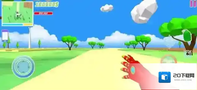 3、呈现了开放沙盒场景,角色装备钢铁侠的手部武器,界面有地图、手雷等元素,属于中玩家操控角色在户外探索战斗的场。