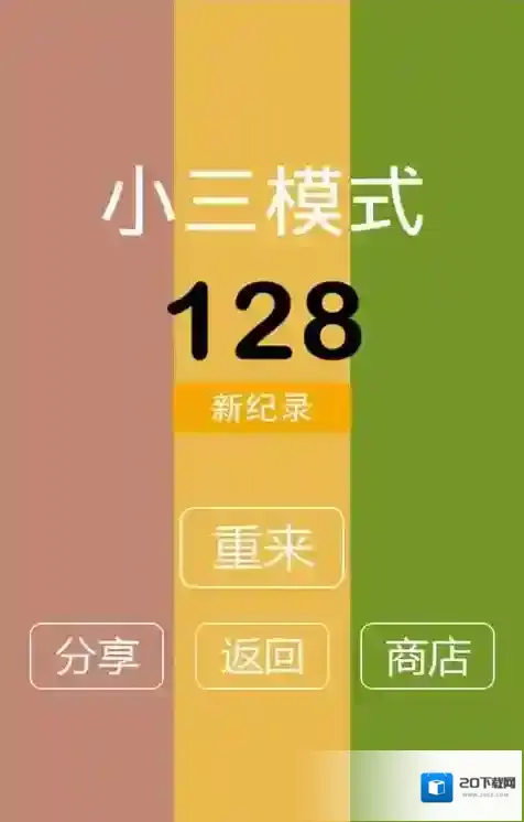 3、结算界面,可点击【重来】重新挑战,或通过【分享】展示成绩,也能去【商店】购买道具。
