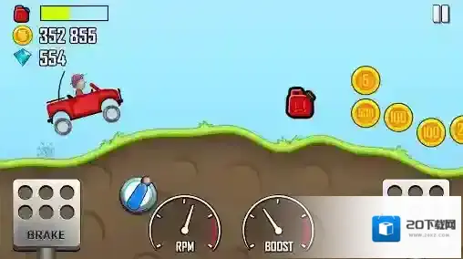 整个屏幕当中就只有两个操控按键,一个是加速按键,一个是刹车按键,但是在游戏当中你需要控制好这两个按键来以确保它的平衡性,不然会使得车翻过去导致游戏的失败。所以还是比较考验玩家的操作能力的。