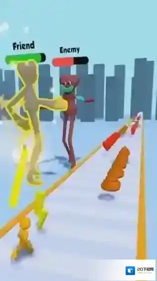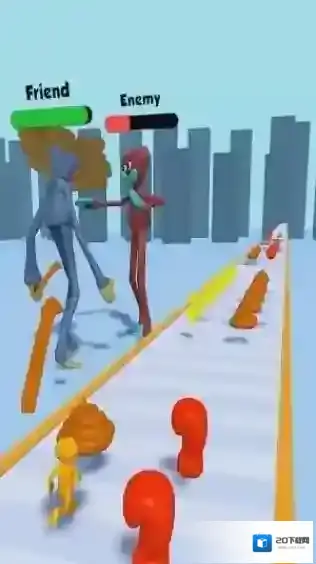 2、该游戏是一款休闲跑酷类,画面中能看到代表“Friend”和“Enemy”的标识,根据提示攻击敌人。