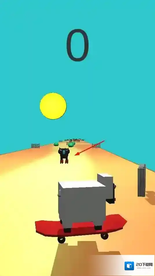 1、玩家操控滑板上的动物角色在道路上前进,通过操作控制角色移动方向,躲避道路上的障碍物。