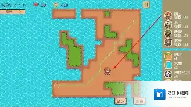 3、“波次防御”,应对1-19等多波敌人进攻,根据战况调整兵种,坚守岛屿,完成关卡。