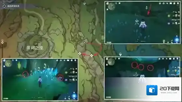 降诸魔山洞窟:大部分位于上层平台或藤蔓上,可借助四叶印快速收集,数量6,推荐指数★★★★。