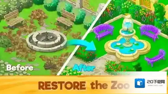 动物大营救是一款融合消除玩法与动物园经营的休闲作品,玩家将化身管理员罗伯特,通过经典三消挑战收集水果道具,喂养饥饿的动物并重建动物园,是以萌系卡通画风呈现狮子、斑马等动物的可爱形象,搭配轻松的消除音效与建设动画,让玩家在爽快的消除过程中,体验从废墟到繁华动物园的成就感,同时感受与动物互动的温馨乐趣。