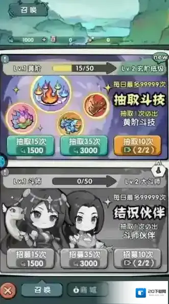 3、玩家还能通过召唤斗技来增强自身实力,在成功抽取斗技后要及时装备上,斗技还可以进行升级,以提升其威力。