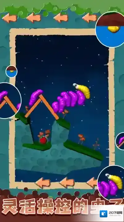 3、身体摆动技巧:长按屏幕后快速滑动可让虫子加速蠕动,在跨越宽间隙时,先向后弯曲身体蓄力,再向前快速摆动实现冲刺跳跃。