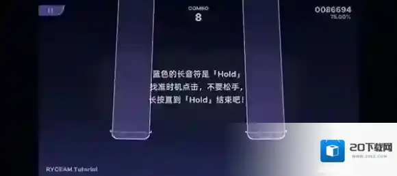 3.「HOLD」玩家需要在「HOLD」到达判定线时用手指长按相应时间。
